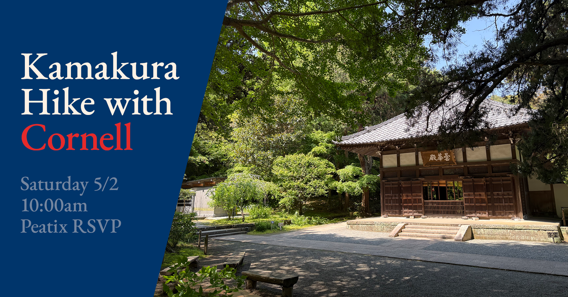 Join fellow alumni of Yale and Cornell for a light hike through the beautiful hills of Kamakura on Saturday, May 2.